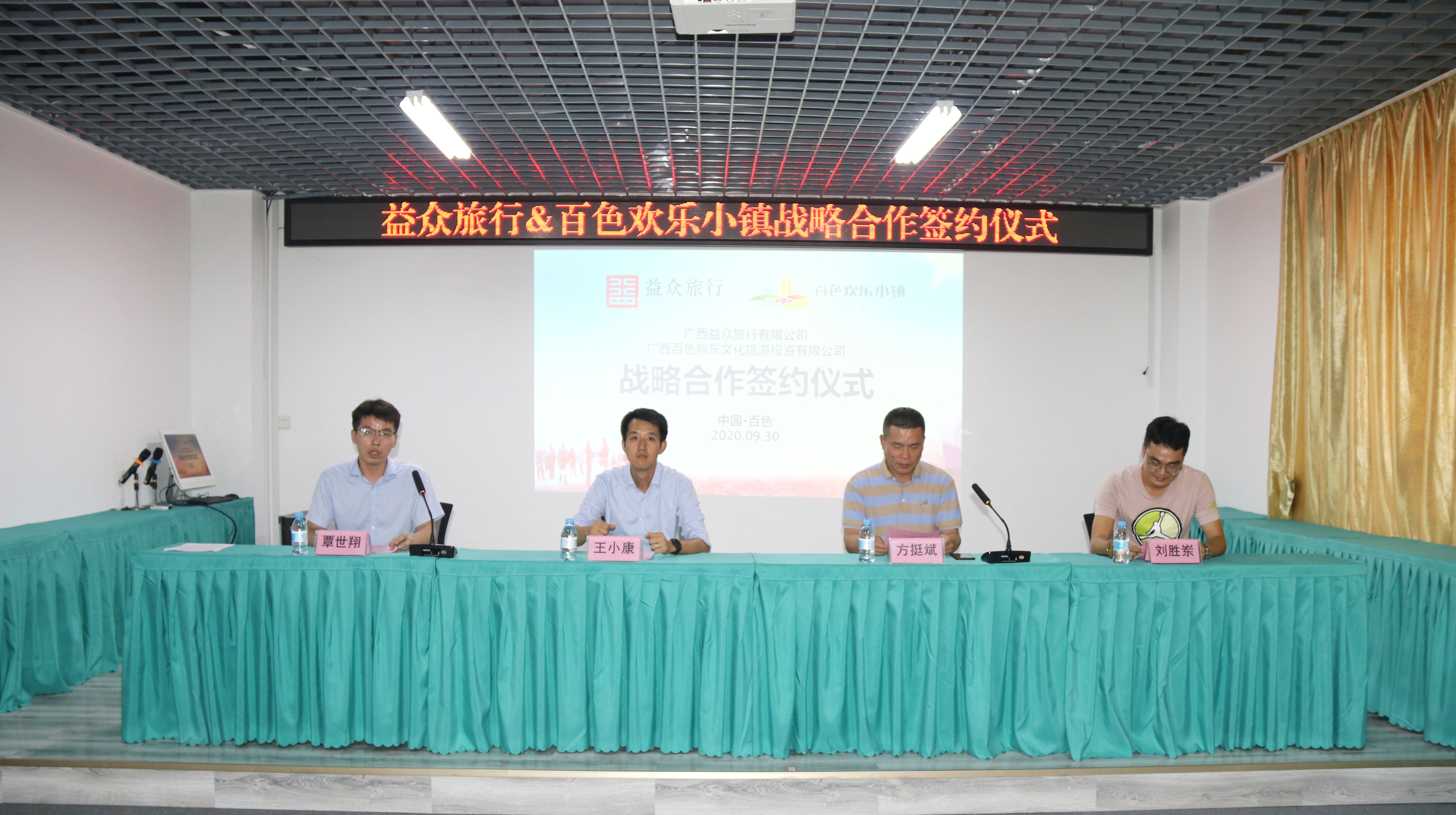 ????????9月30日,廣西益眾旅行有限公司與廣西百色智東文化旅游投資有限公司舉行戰(zhàn)略合作簽約儀式。廣西益眾旅行有限公司副總經(jīng)理王小康、百色歡樂(lè)小鎮(zhèn)總經(jīng)理方挺斌、廣西百色智東文化旅游投資有限公司副總經(jīng)理劉勝崠出席儀式。