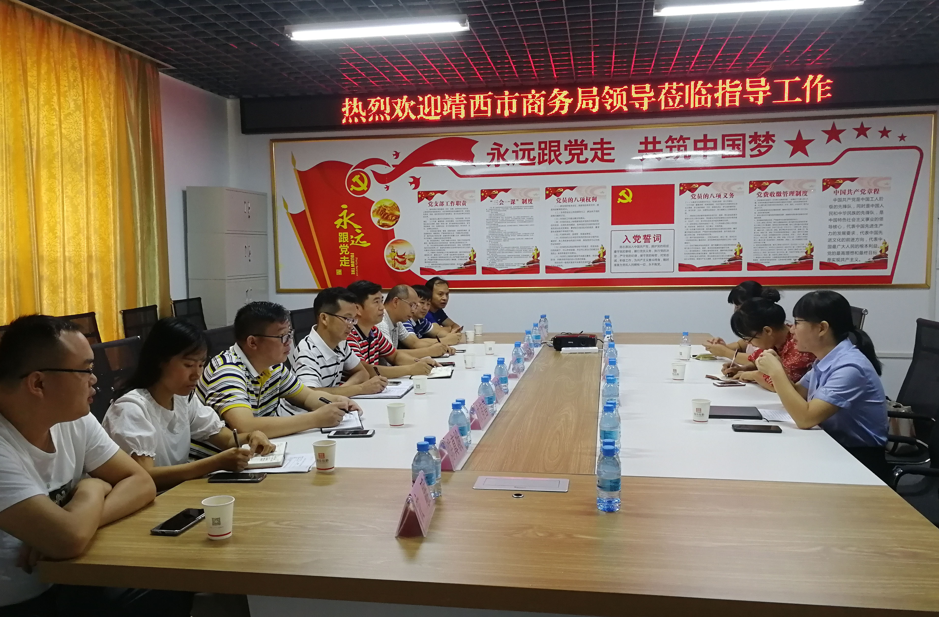 ????????近日,靖西市商務局局長趙庭克帶領該局相關(guān)部門人員、靖西市有關(guān)企業(yè)負責人一行8人到廣西益眾后勤產(chǎn)業(yè)投資有限公司考察調(diào)研,右江區(qū)商務中心主任孫春春、益眾后勤公司相關(guān)負責人陪同考察調(diào)研。
