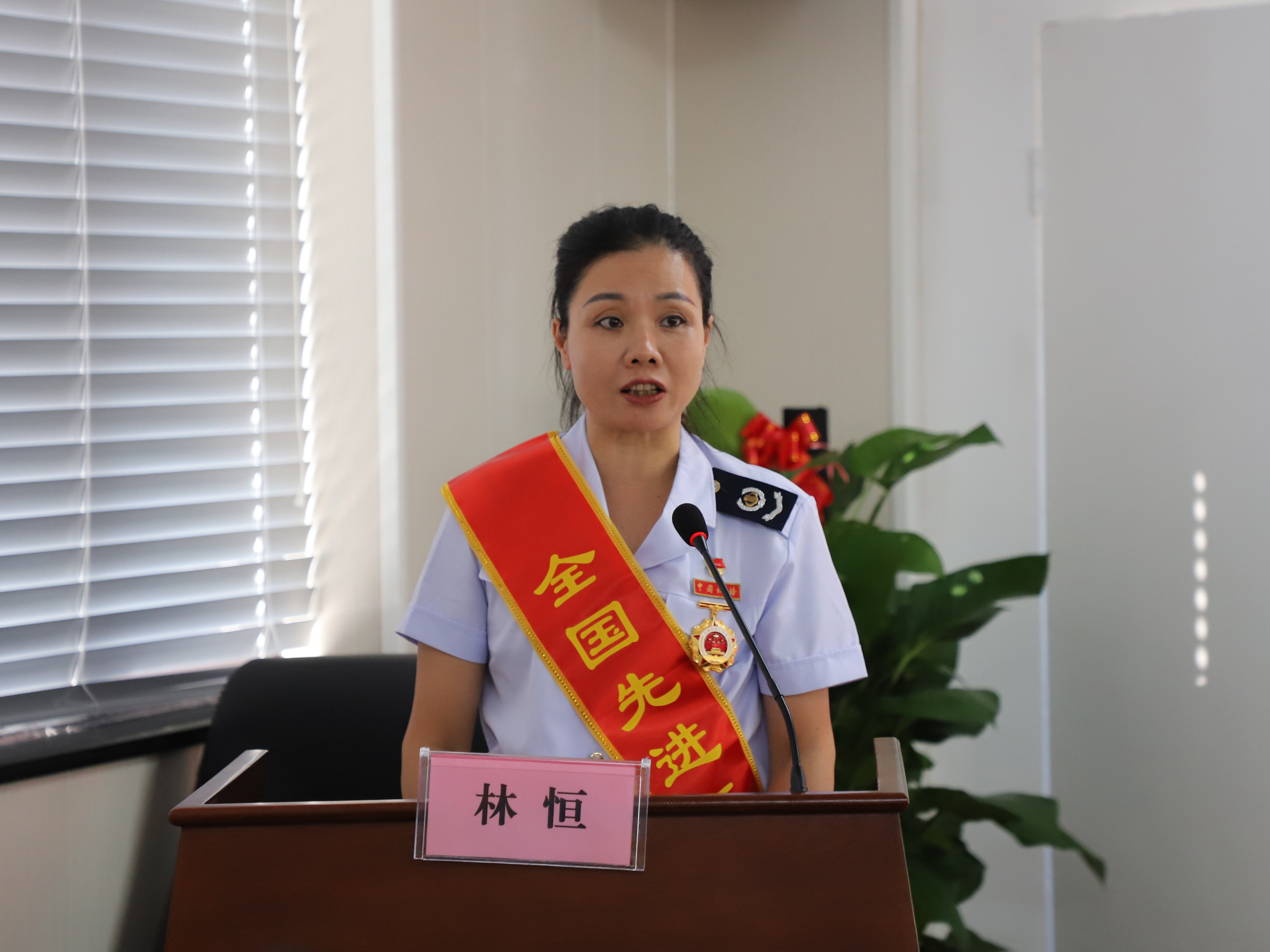 林恒同志以《三十七載從稅路,無悔奉獻守初心》為題作宣講報告