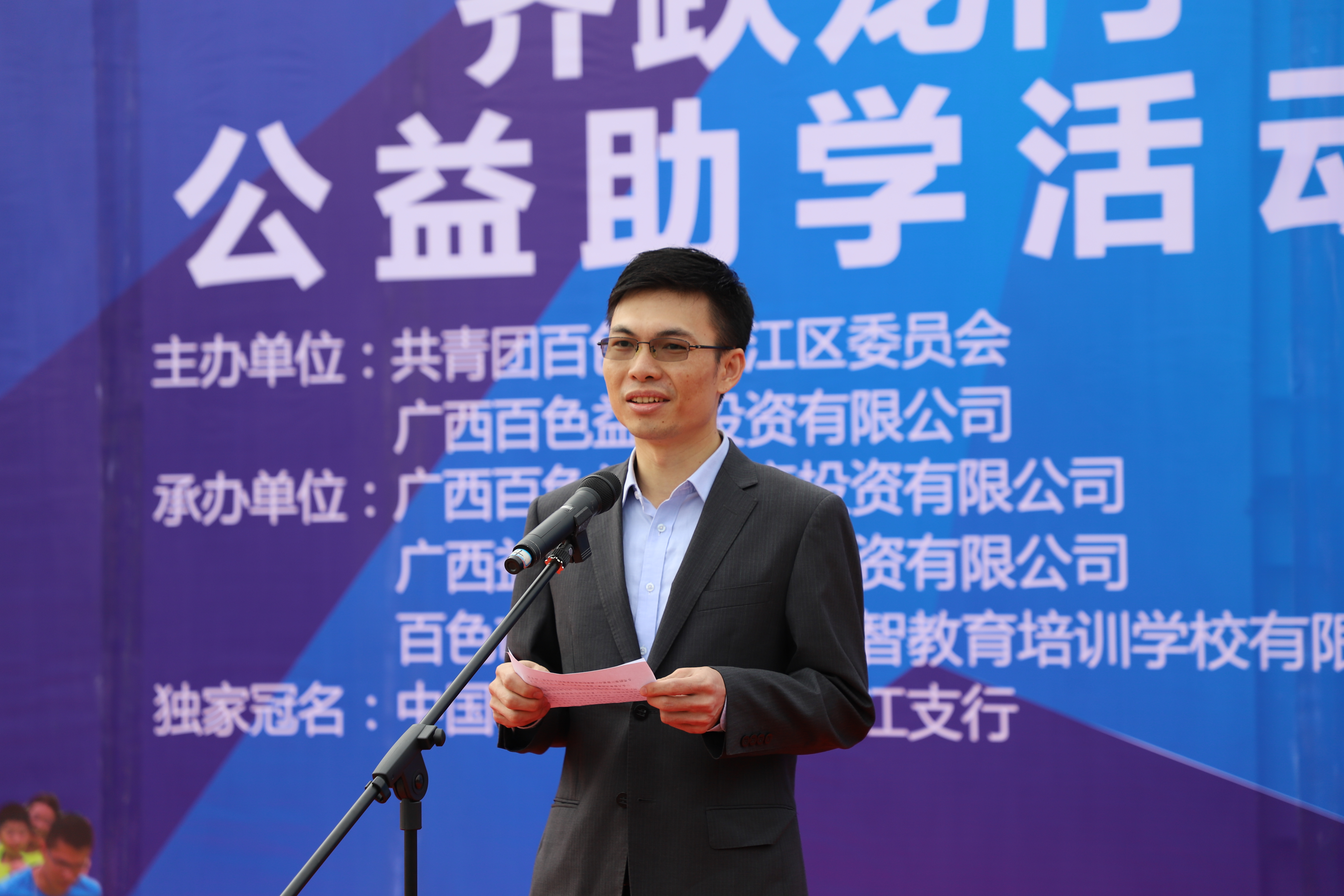 ????????本次公益助學(xué)活動由共青團(tuán)百色市右江區(qū)委員會、廣西百色益眾投資有限公司聯(lián)合主辦,廣西百色益眾教育投資有限公司、廣西益眾后勤產(chǎn)業(yè)投資有限公司、百色市右江區(qū)博學(xué)匯智教育培訓(xùn)學(xué)校有限公司聯(lián)合承辦。