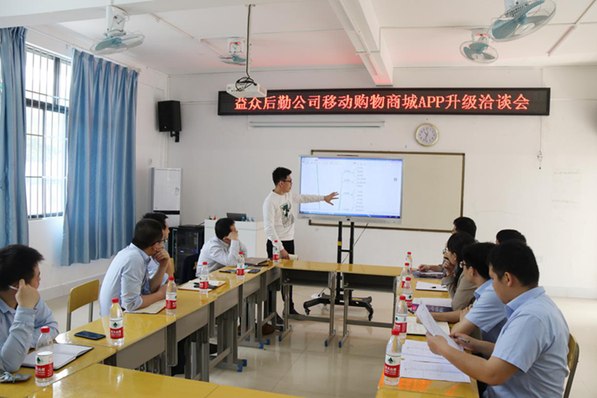 ?????? 4月11日上午,益眾后勤公司組織召開了移動購物商城APP“益眾后勤”系統(tǒng)升級洽談會。通過與網(wǎng)絡(luò)科技公司溝通交流,力求打造一個功能更加完善,更快速便捷的網(wǎng)上購物平臺。