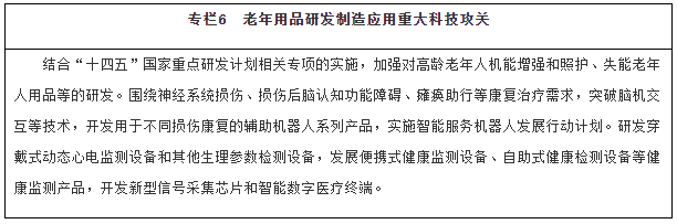 加強(qiáng)老年科技的成果轉(zhuǎn)化。利用現(xiàn)有資金渠道,支持老年用品關(guān)鍵技術(shù)和產(chǎn)品研發(fā)、成果轉(zhuǎn)化、服務(wù)創(chuàng)新及應(yīng)用推廣,促進(jìn)產(chǎn)業(yè)創(chuàng)新。支持在老年用品領(lǐng)域培育國(guó)家技術(shù)創(chuàng)新示范企業(yè)、“專精特新”企業(yè)、制造業(yè)單項(xiàng)冠軍企業(yè)等,加強(qiáng)產(chǎn)學(xué)研用協(xié)同創(chuàng)新和關(guān)鍵共性技術(shù)產(chǎn)業(yè)化。加強(qiáng)老年用品領(lǐng)域知識(shí)產(chǎn)權(quán)保護(hù),依法保護(hù)相關(guān)專利、商標(biāo)和商譽(yù)等合法權(quán)益。